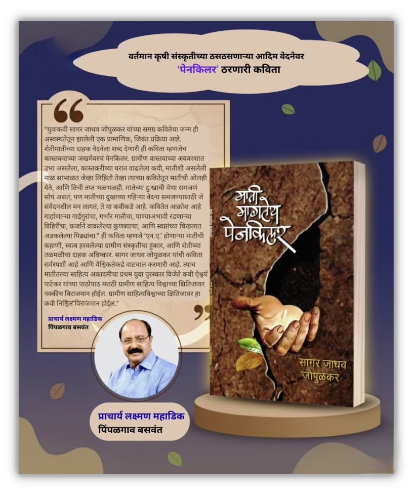 सागर जाधव जोपुळकर यांनी आधुनिक शेतीतील त्रास, शेतकऱ्यांच्या आणि मातीच्या वेदना तसेच ग्रामीण संस्कृतीच्या भीषण वास्तवाला भावपूर्ण शब्द दिले आहेत.